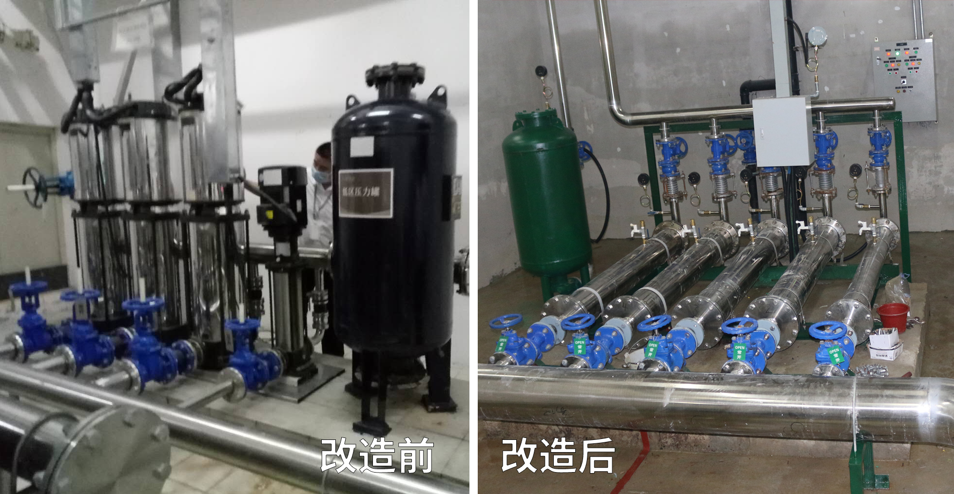 5. 双源供水保障:新设备连接市政和水池两路进水,保障水质和供水稳定性。